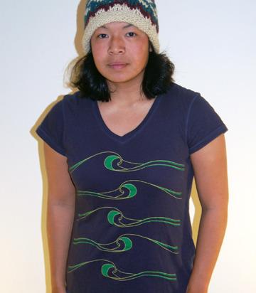 The navy lefts and rights gals t-shirt is 100% cotton, fashion fit, comfortable, ring spun soft tee. There is a BirdSwell bird graphic on the back right shoulder.